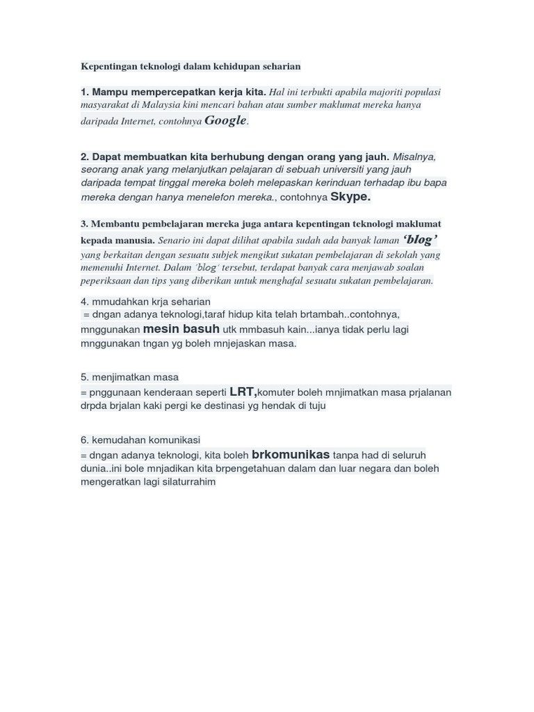 Kepentingan Teknologi Dalam Kehidupan Seharian Pdf